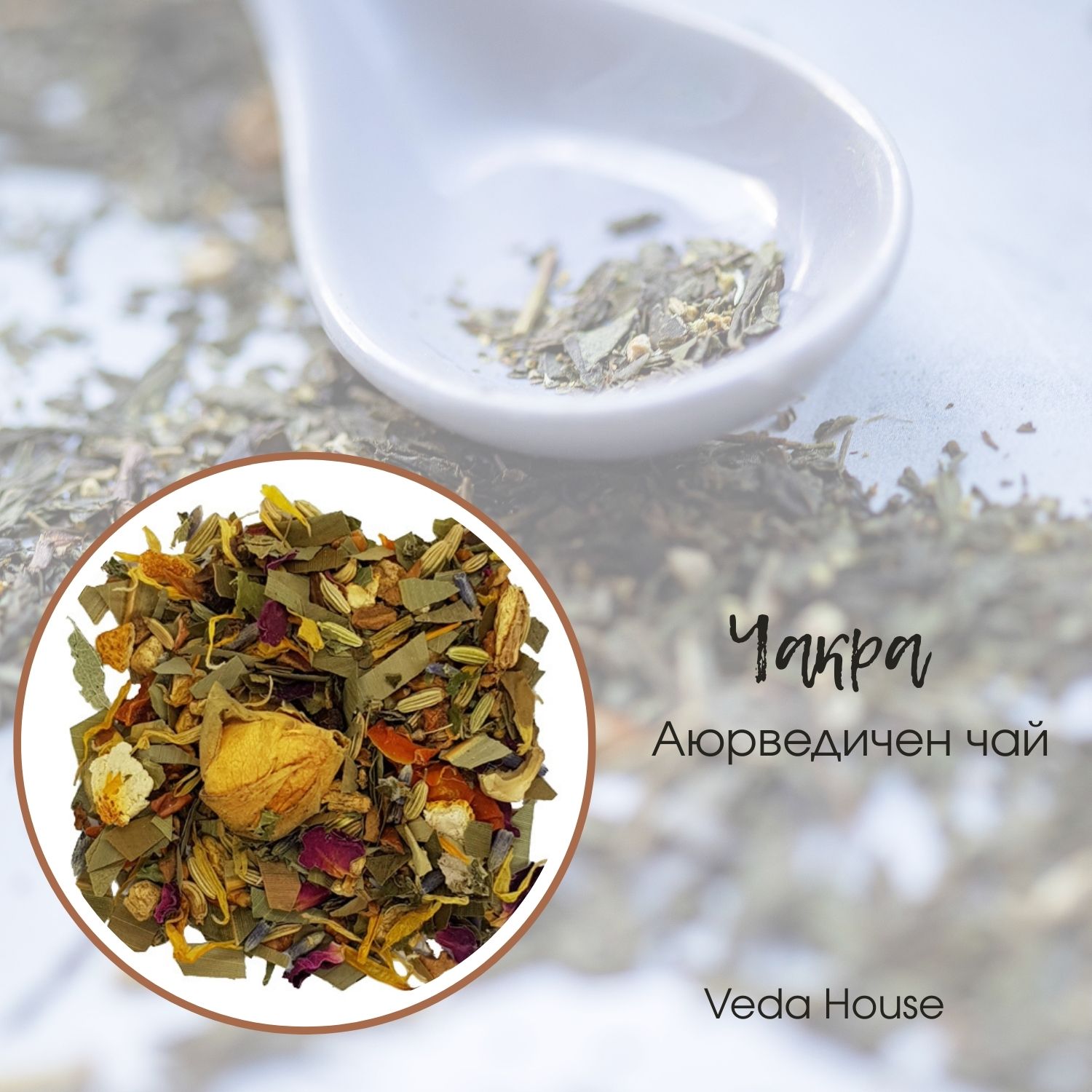 Насипен билков чай от Веда Хауз, предлаган в разфасовки 50 г и 100 г.